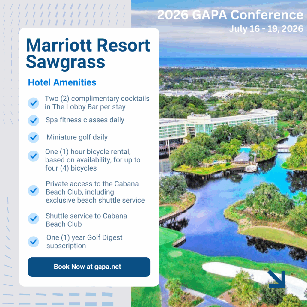 The 2026 GAPA Summer CME Conference will be held at the Marriott Resort Sawgrass in Ponte Vedra Beach, FL on July 16 – 19, 2026.